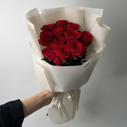Букет из 11 персиковых мини-гербер и зелени в дизайнерской упаковке “Персиковые бабочки”