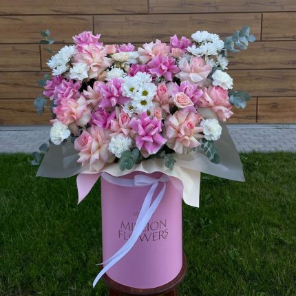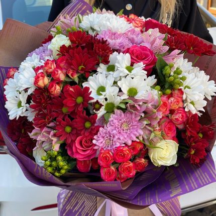 Большой букет с французскими розами, пион кустовой розой и гортензией