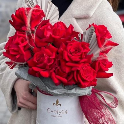 Букет из сухоцветов – лагуруса и хлопка в шляпной коробке «Прикосновение»