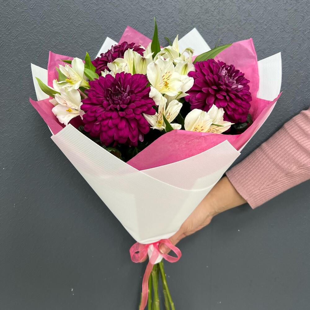 Букет из альстромерии с хризантемой