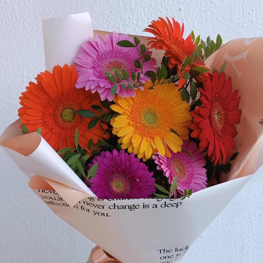 Весёлый микс ярких гербер подарит прекрасное настроение и море позитивных эмоций