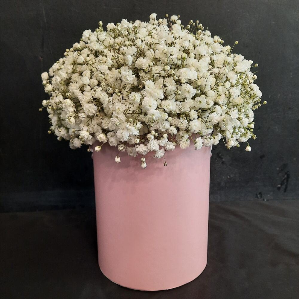 Гипсофила – 5 шт.Оазис флористический – 1 шт.Коробка шляпная – 1 шт.