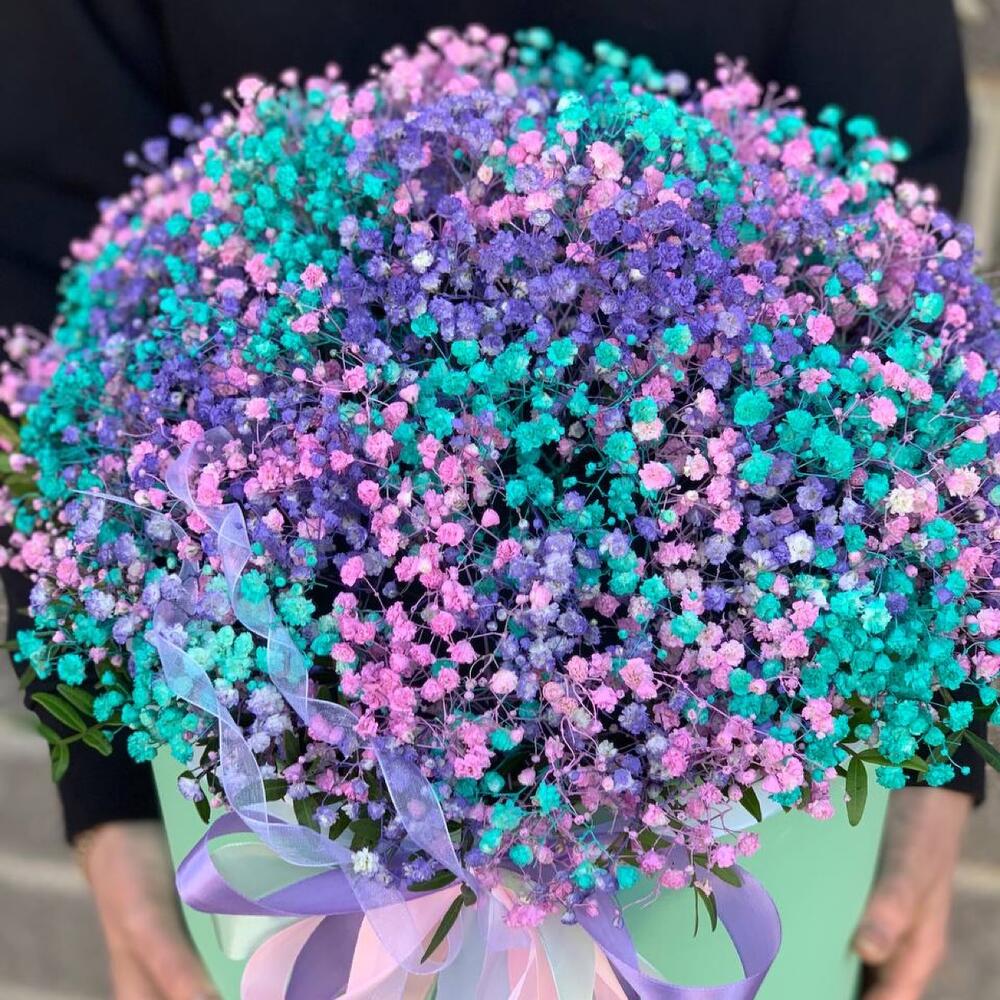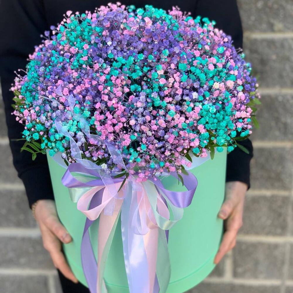 Большая коробка с цветной гипсофилой