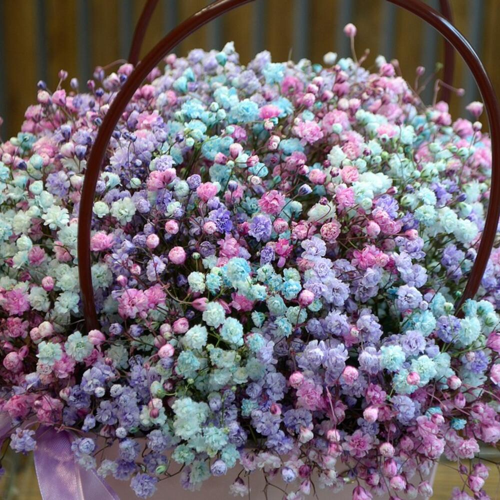 “Сиреневый туман” – композиция из гипсофилы в шляпной коробке