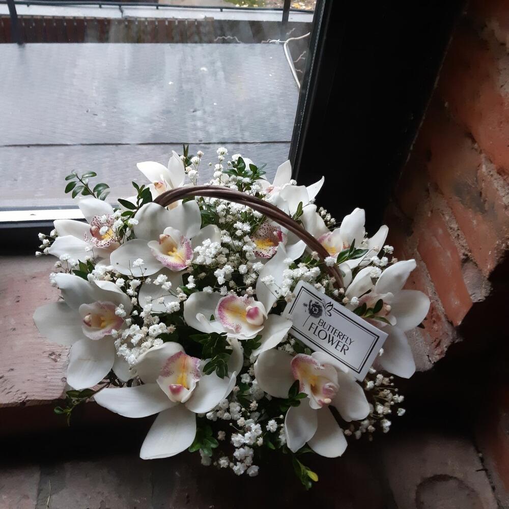 ЦИМБИДИУМ – 11 шт.Самшит – 5 шт.Гипсофила – 5 шт.Корзина – 1 шт.Оазис – 1 шт.