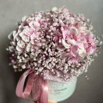 “Сиреневый туман” – композиция из гипсофилы в шляпной коробке