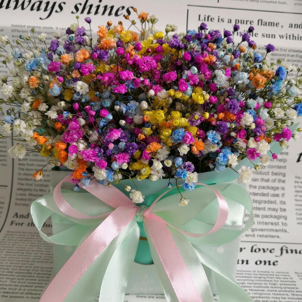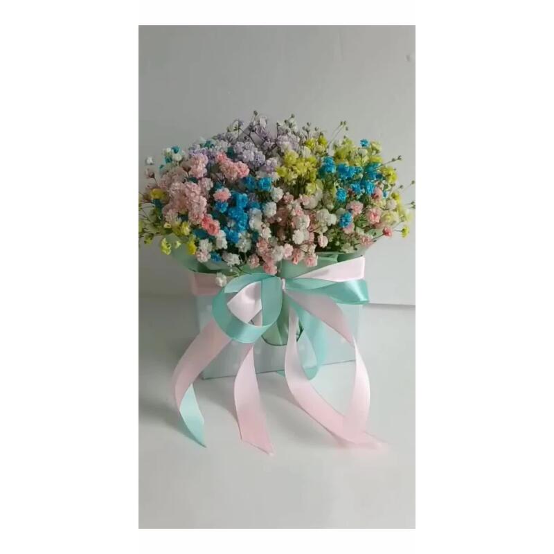 Радужная гипсофила в деревянном ящичке