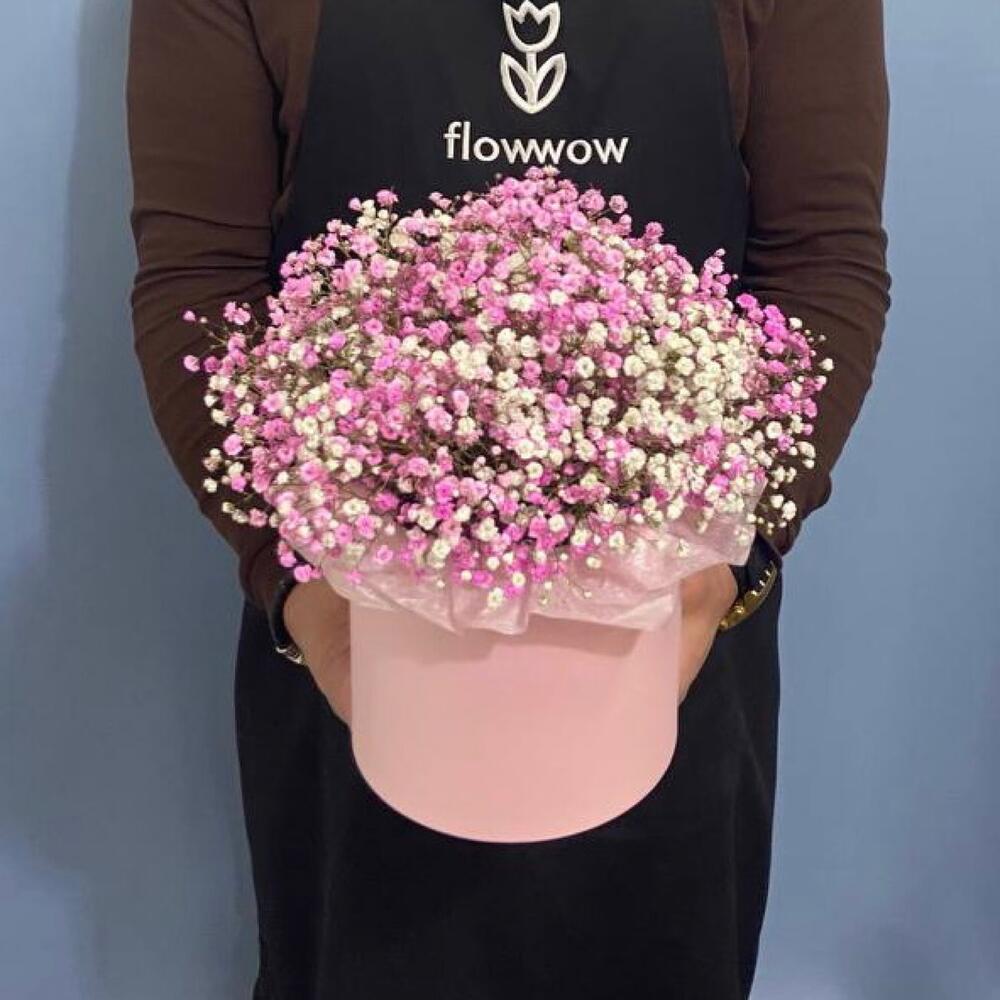 Коробка шляпная – 1 шт.Гипсофила розовая – 6 шт.