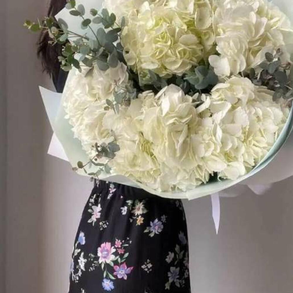 Букет из гортензии, роз и хлопка