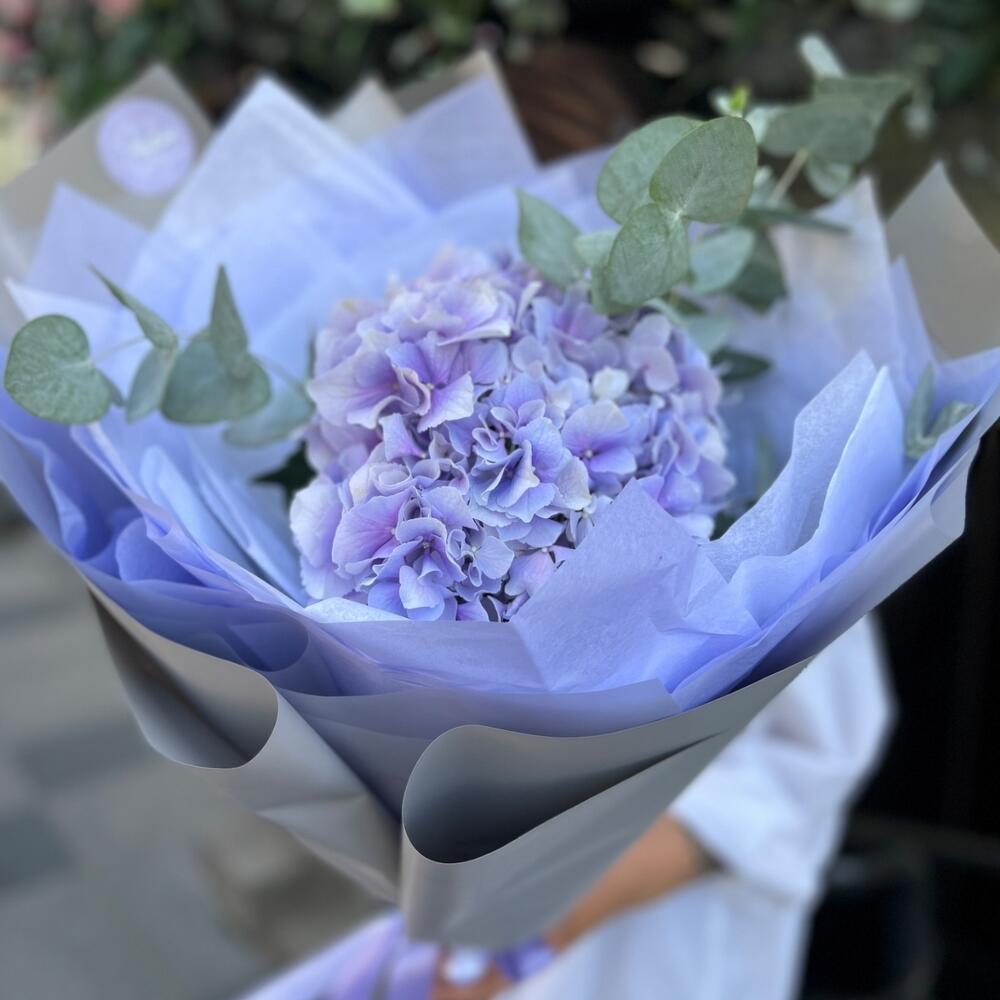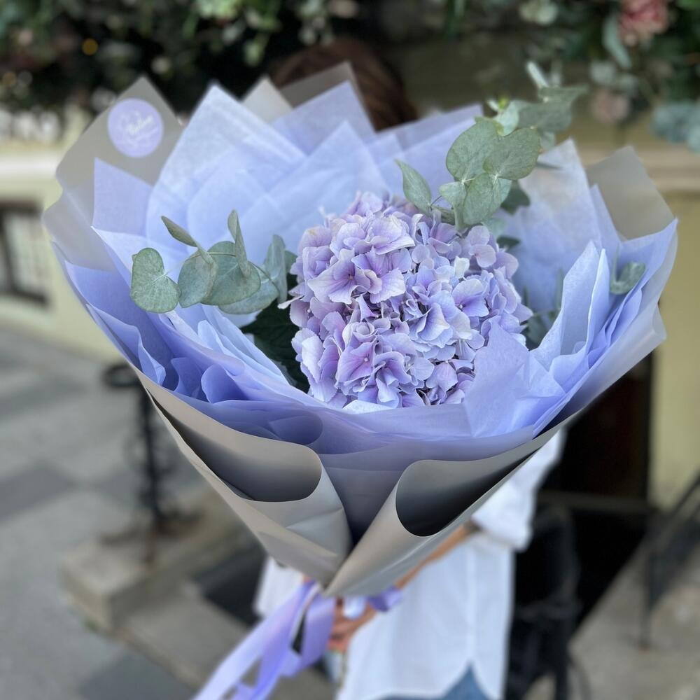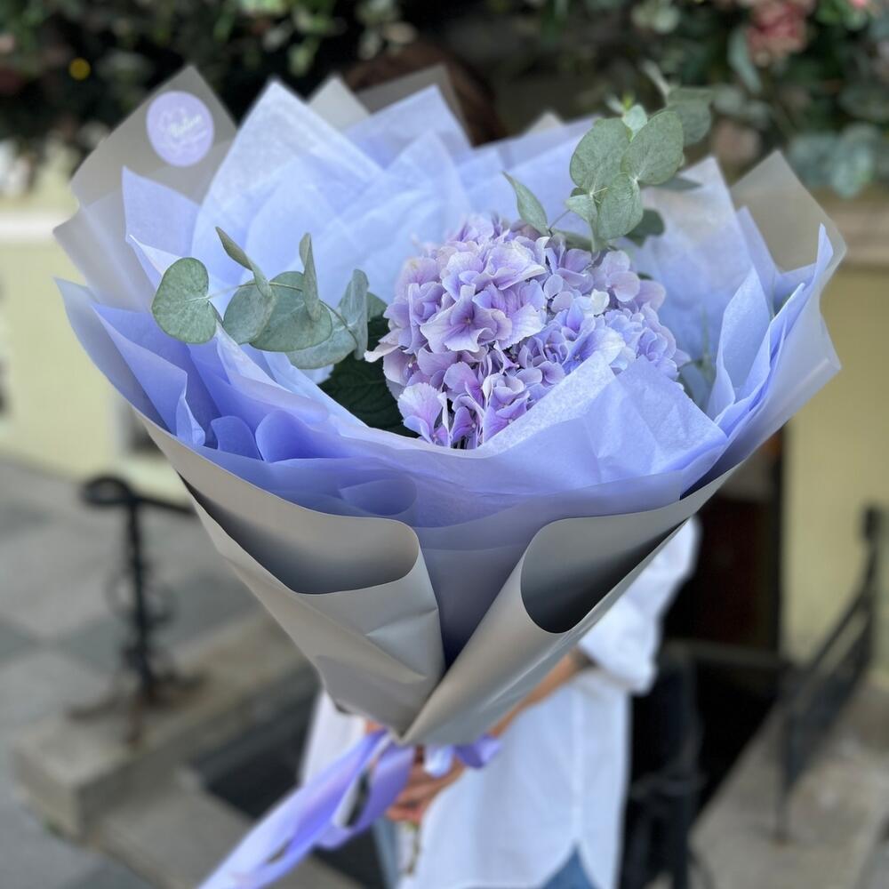 Гортензия сиреневая – 1 шт.Эвкалипт – 1 шт.Дизайнерская упаковка – 1 шт.Открыточка с вашими пожеланиями – 1 шт.Шоколадка – 1 шт.