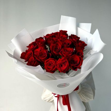 25 красных роз 50см в оформлении