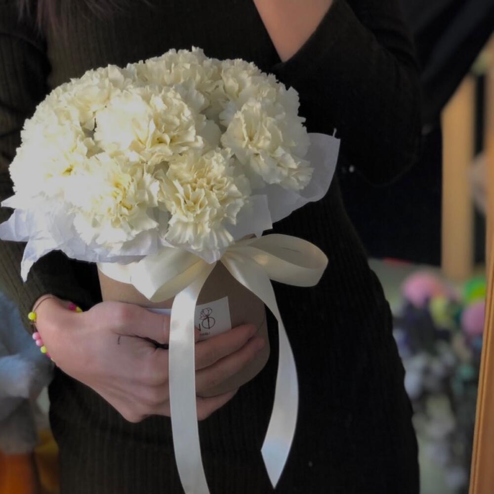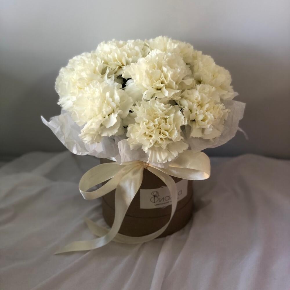 Шляпная коробка – 1 шт.Гвоздика сортовая – 11 шт.Оформление – 1 шт.