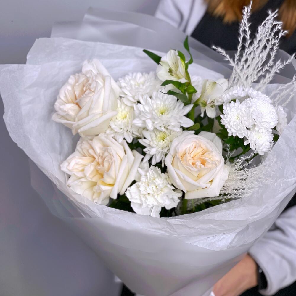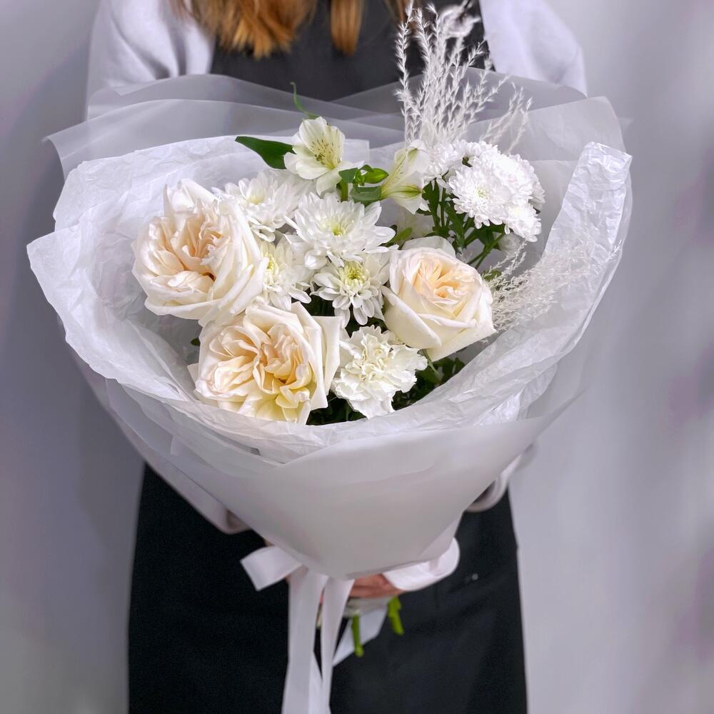 Белый букет с ароматными пионовидными розами