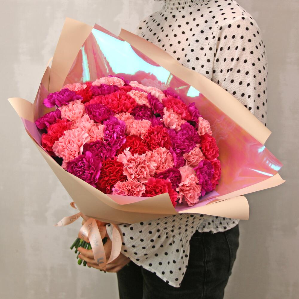 Букет из 51 диантуса (гвоздики) микс в стильной упаковке
