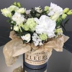 Цветочная композиция в корзине с белым лизиантусом "Нежная"