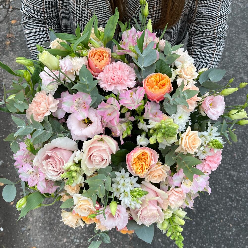 Гвоздики, Кустовые розы, Пионовидные розы, Розы