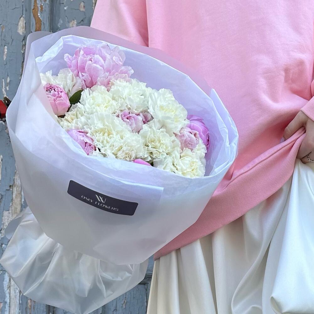 Пион – 7 шт.Диантус – 15 шт.Упаковка дизайнерская – 2 шт.