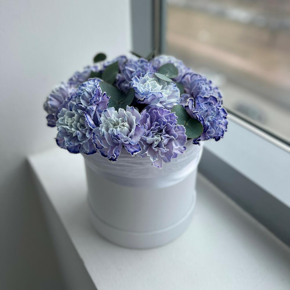 Шляпная коробка лавандовых гвоздик (N 125)