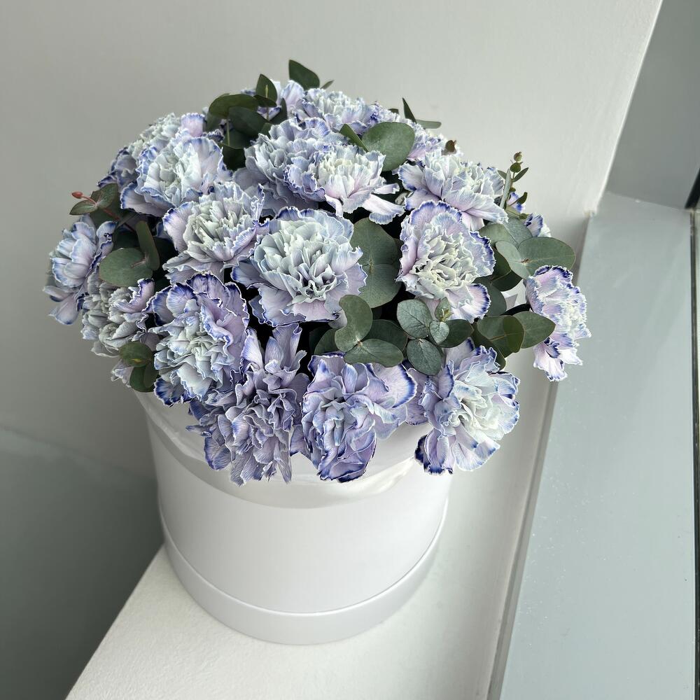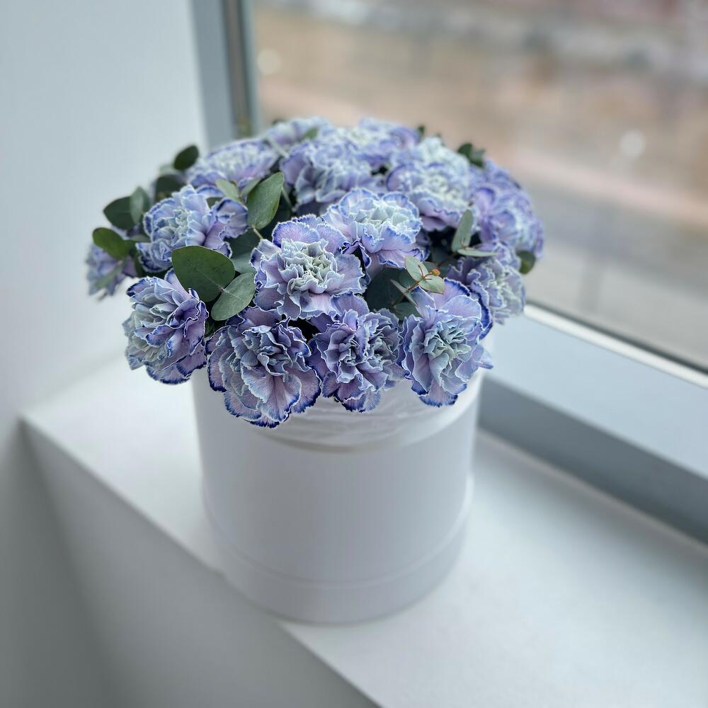 Шляпная коробка лавандовых гвоздик (N 125)