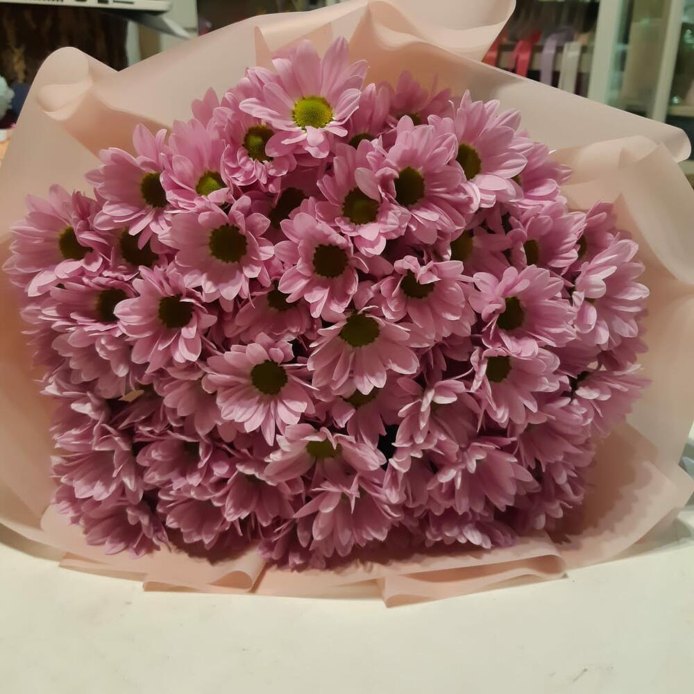 Букет из 9 нежно-розовых кустовых хризантем