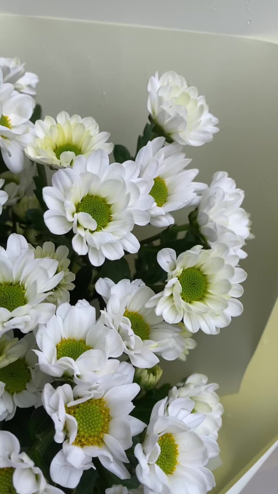 Хризантема кустовая – 7 шт.Лента атласная – 2 шт.Упаковка дизайнерская – 5 шт.