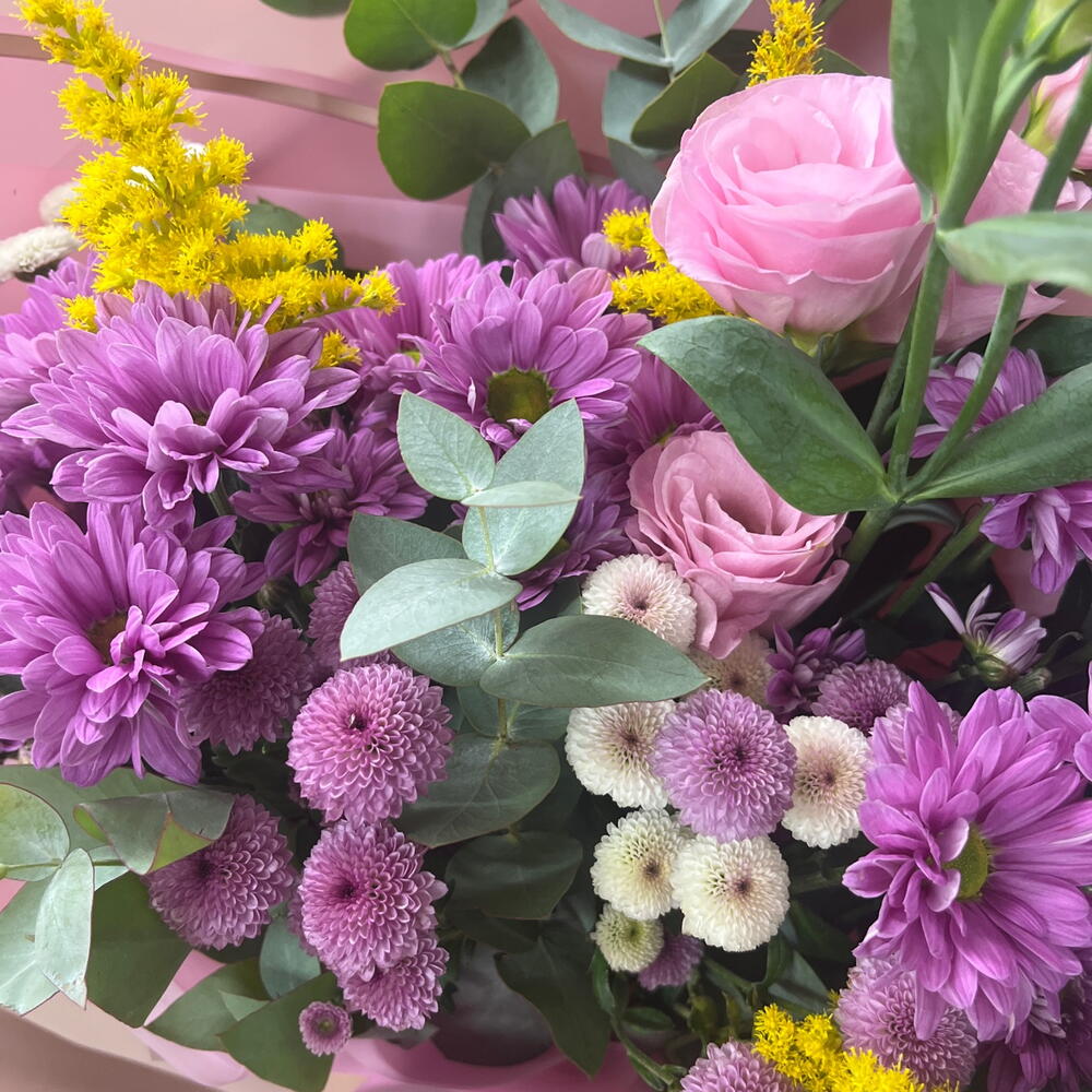 Букет ромашки, розовые альстромерии и лимониум. WISTERIA FLOWERS