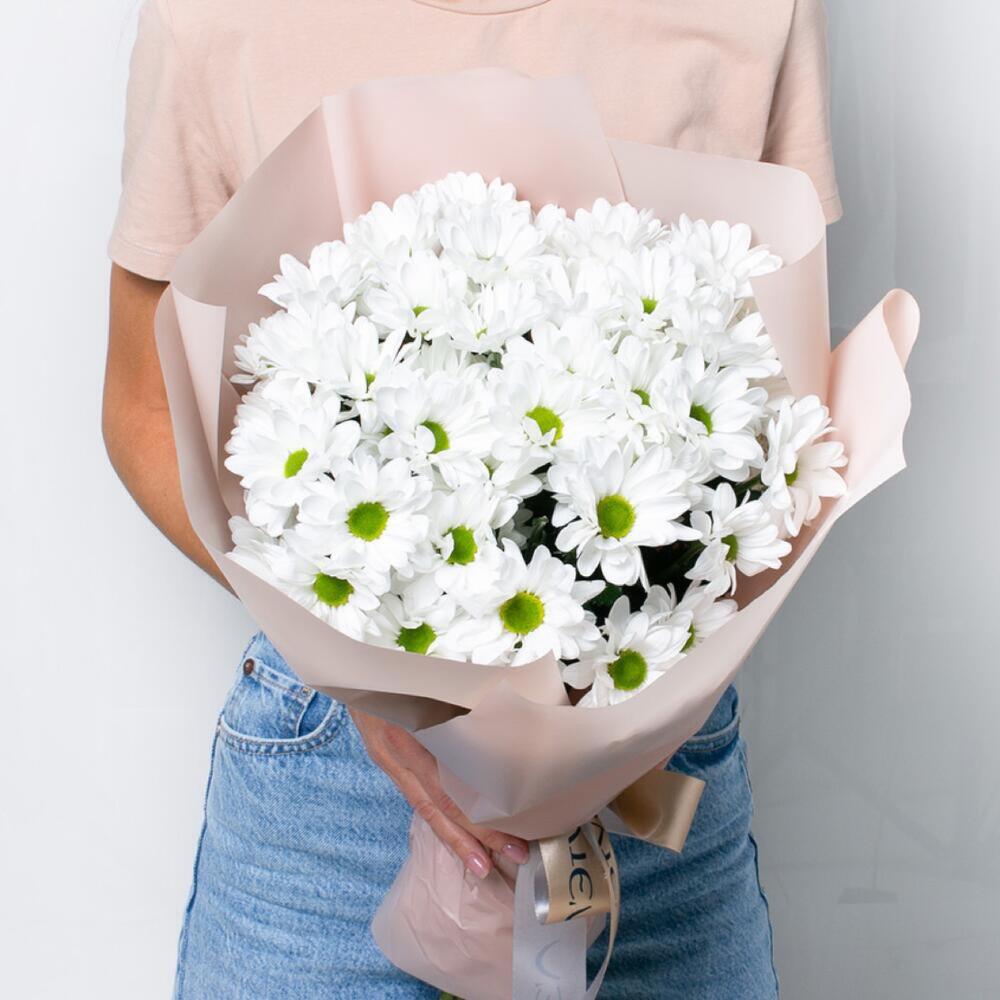 Букет "Ромашковое поле" из свежих хризантем 9 шт. (55 см)