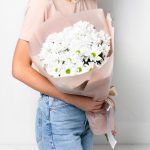 Букет “Ромашковое поле” из свежих хризантем 9 шт. (55 см)