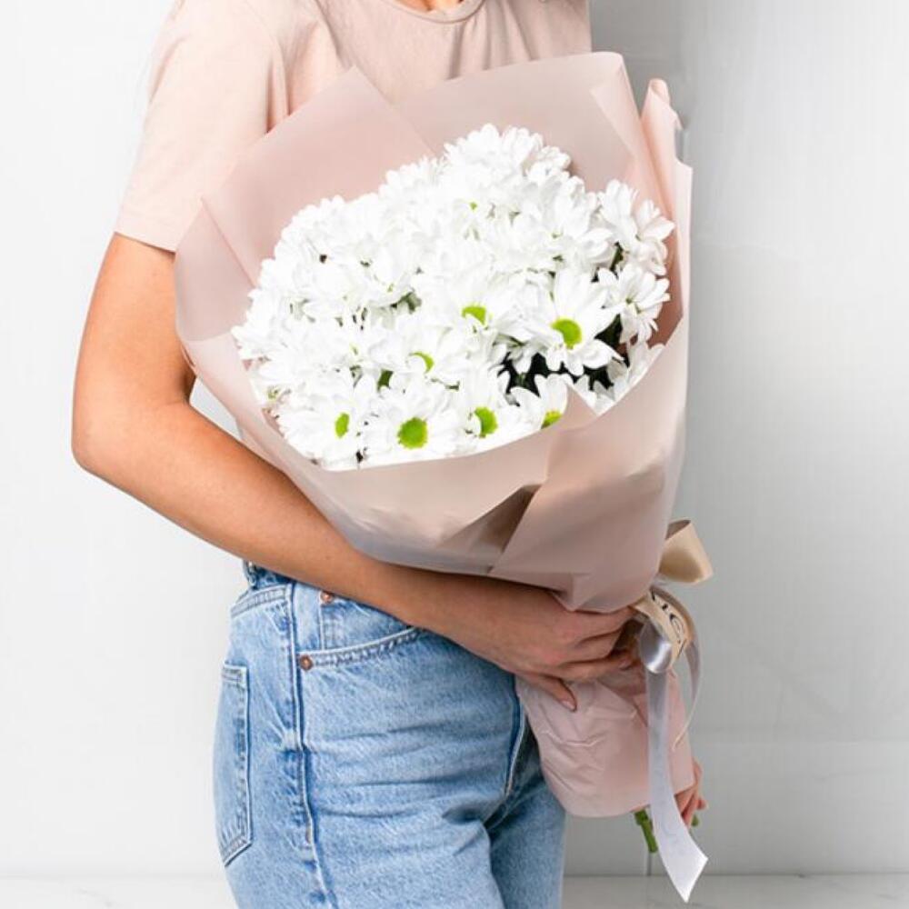 Хризантема Ромашковая – 9 шт. Упаковка дизайнерская – 1 шт. Открыточка с вашими пожеланиями – 1 шт.