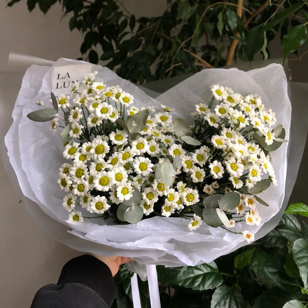 Монобукет из ромашковидных хризантем сантини