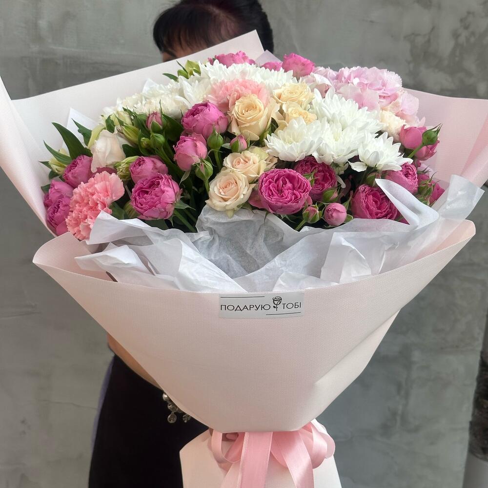 15 кустовых пионовидных роз сильва пинк. Букет 24 KimFlo