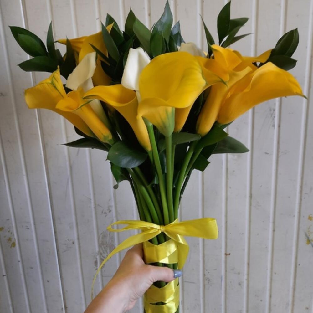каллы микс – 29 шт.рускус (уп.) – 1 шт.