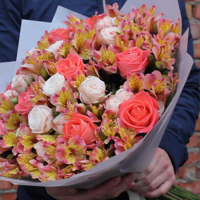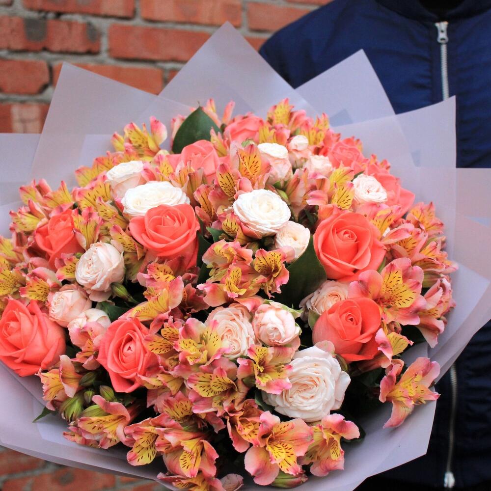Букет микс из альстромерии и роз