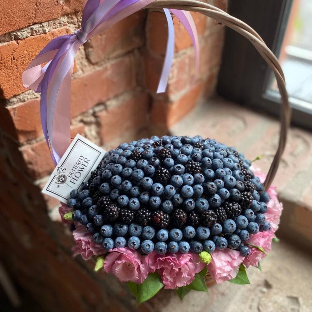 Корзинка из ягод ежевики, голубики и цветов “Лесная фея”