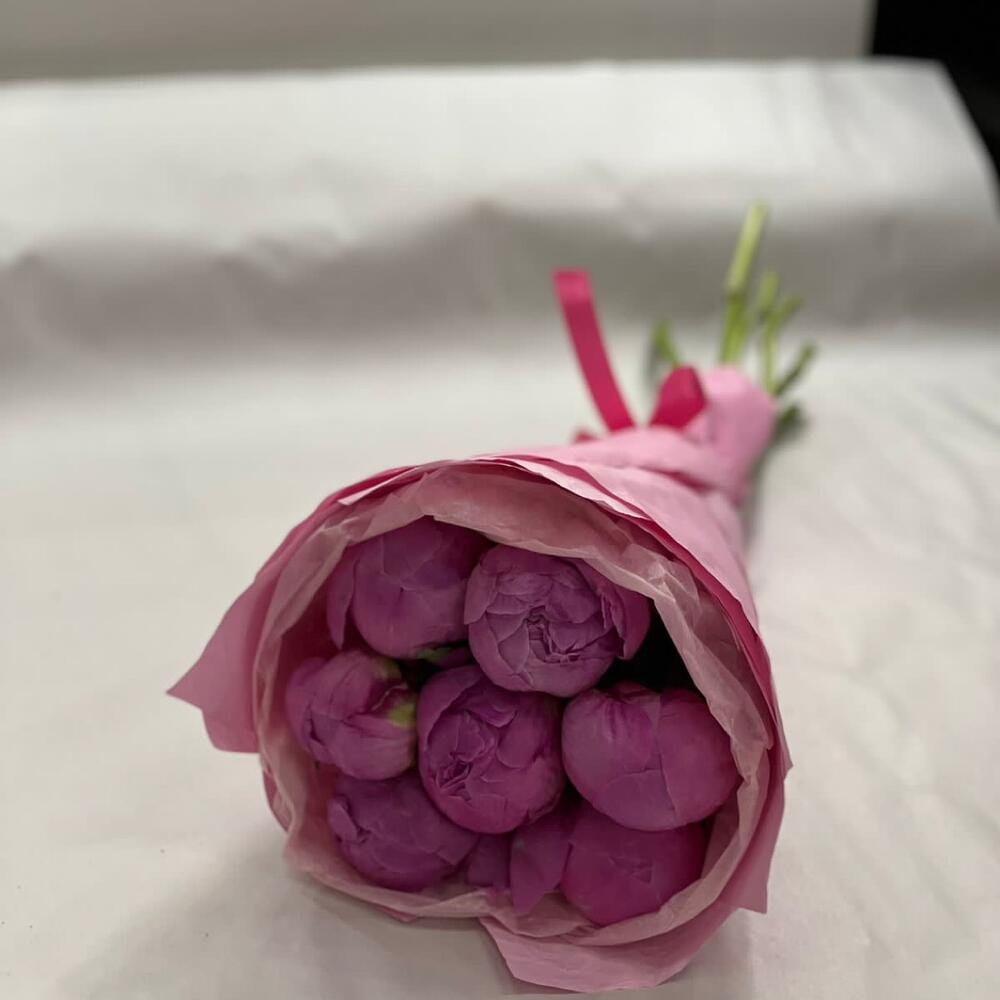 Упаковка – 2 шт.Лента атласная – 1 шт.Пион ярко розовый – 7 шт.