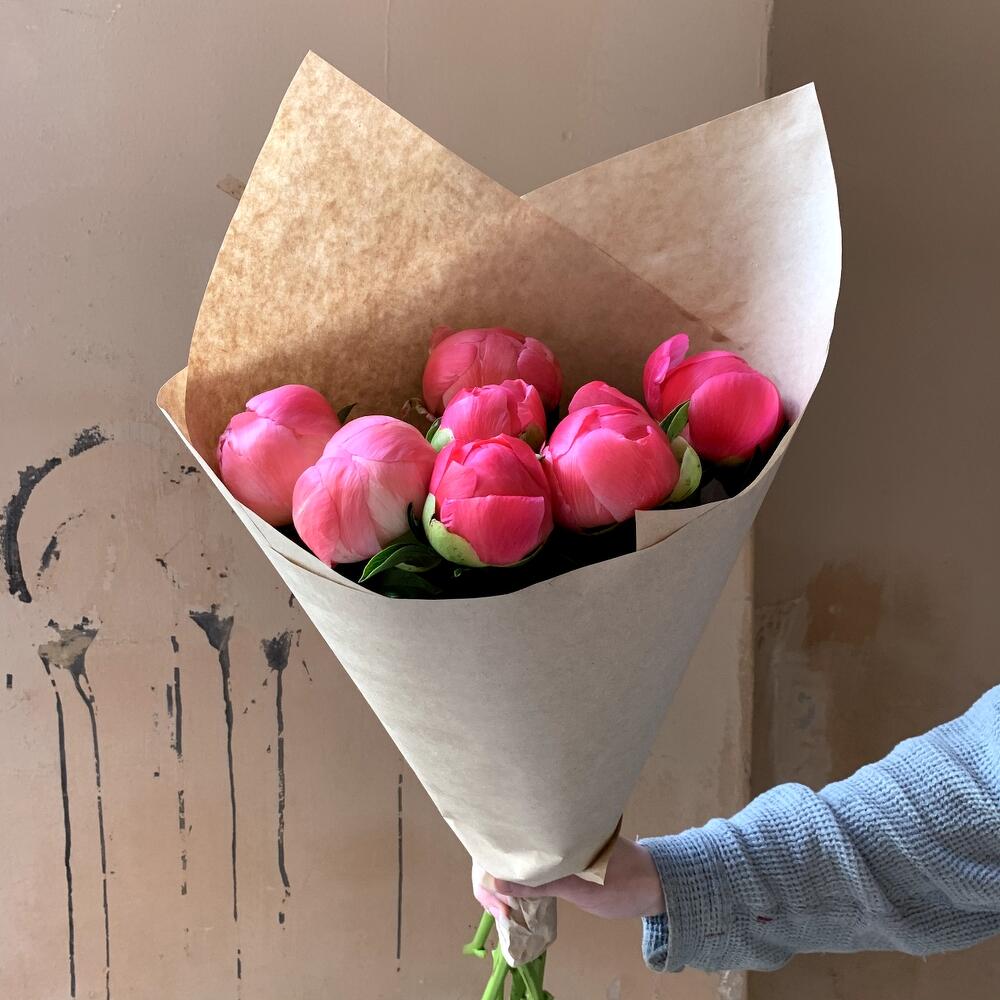 Коралловые пионы 7 шт в крафте