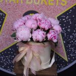 Лента атласная – 4 шт.Шляпная коробка – 1 шт.Пион Сара Бернар – 11 шт.Оазис флористический – 1 шт.