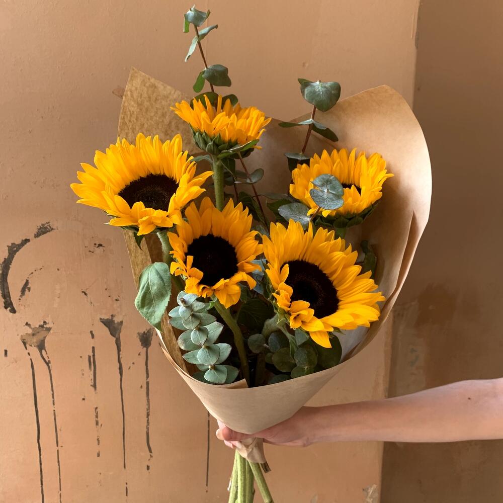 Эвкалипт – 3 шт.Подсолнух – 5 шт.Крафт упаковка – 1 шт.