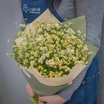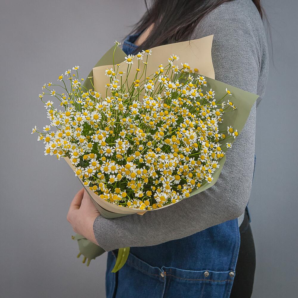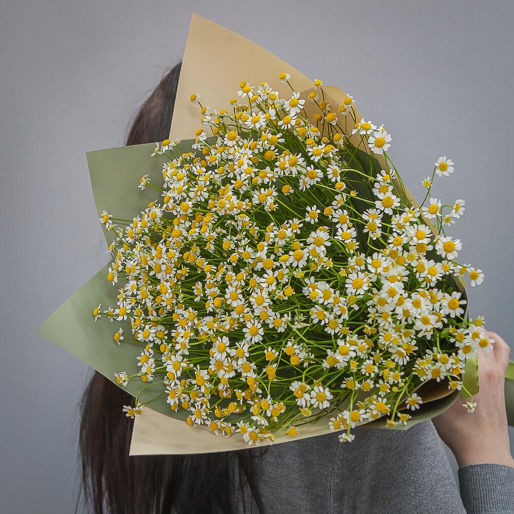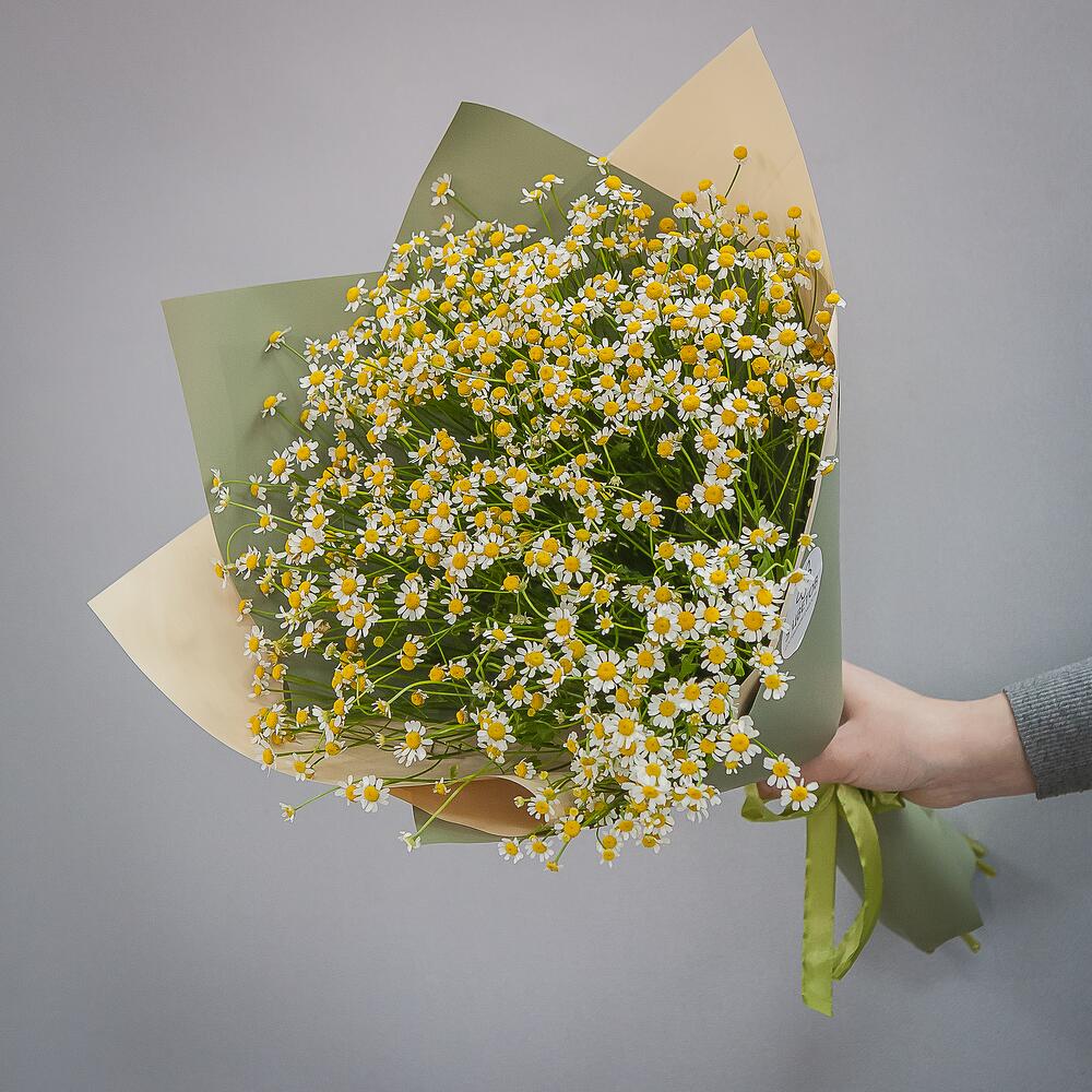 ромашки – 19 шт.дизайнерская упаковка и атласная лента – 1 шт.