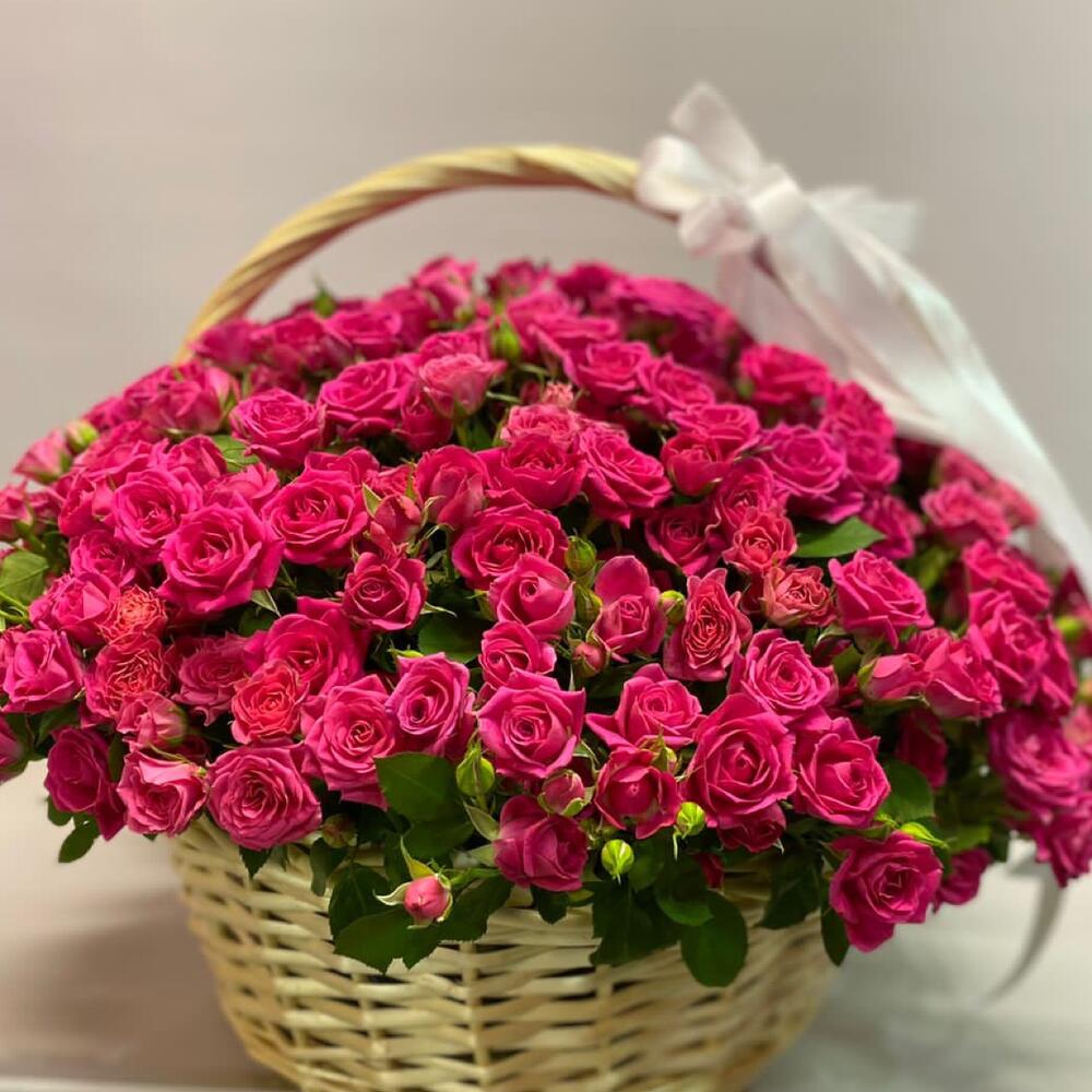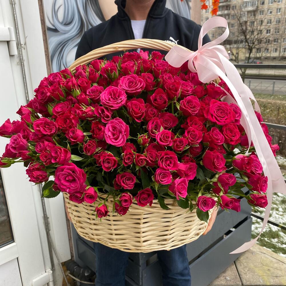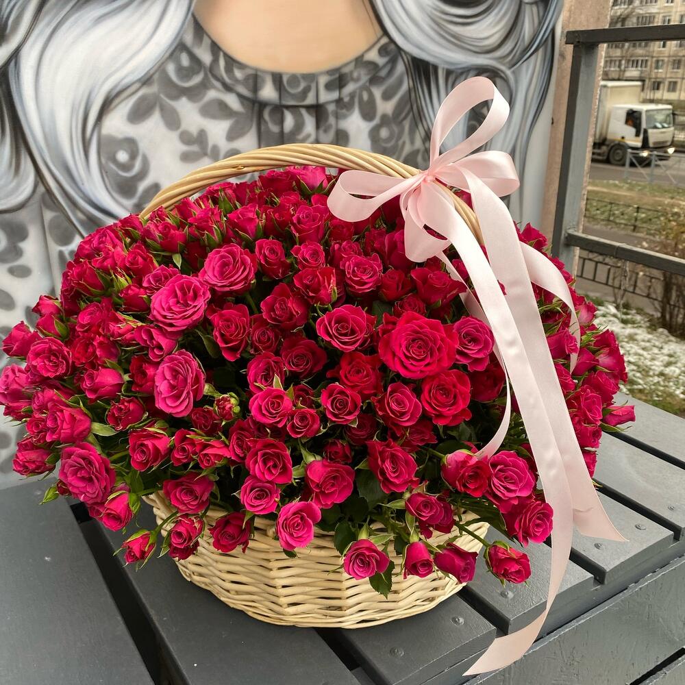 Роза кустовая – 101 шт.Корзина – 1 шт.