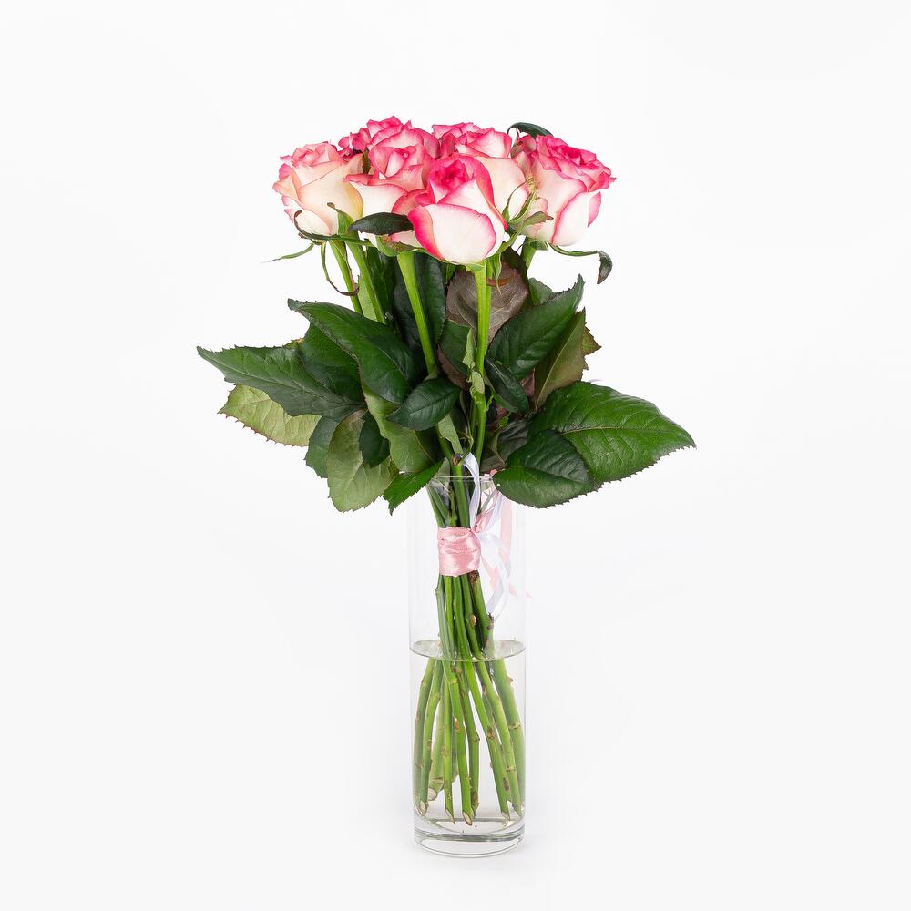 Небольшой букет из 11 бело-розовых роз Джумилия. Такой букет позволит Вам выразить свою симпатию и покорить сердце понравившейся девушки