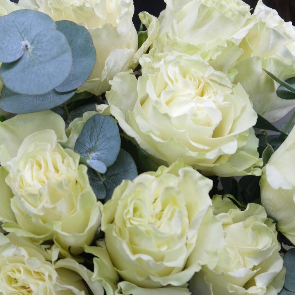 Эвкалипт – 1 шт.Роза – 11 шт.Упаковка – 1 шт.Инструкция по уходу – 1 шт.подкормка для стойкости цветов – 1 шт.