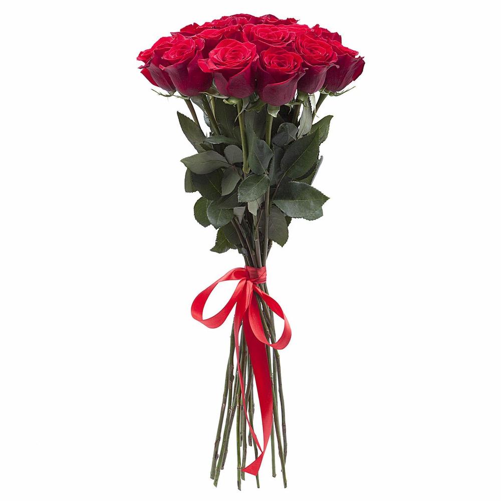 Лента атласная – 1 шт.Роза красная 70 см – 15 шт.