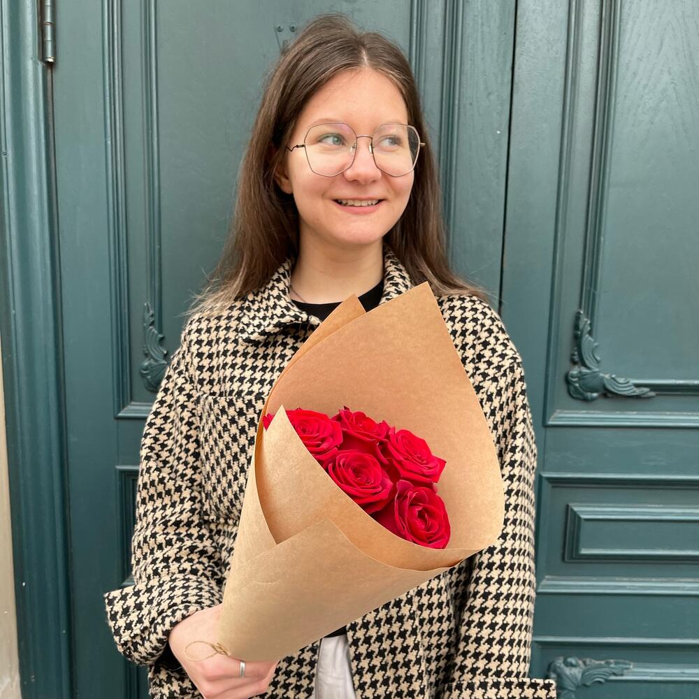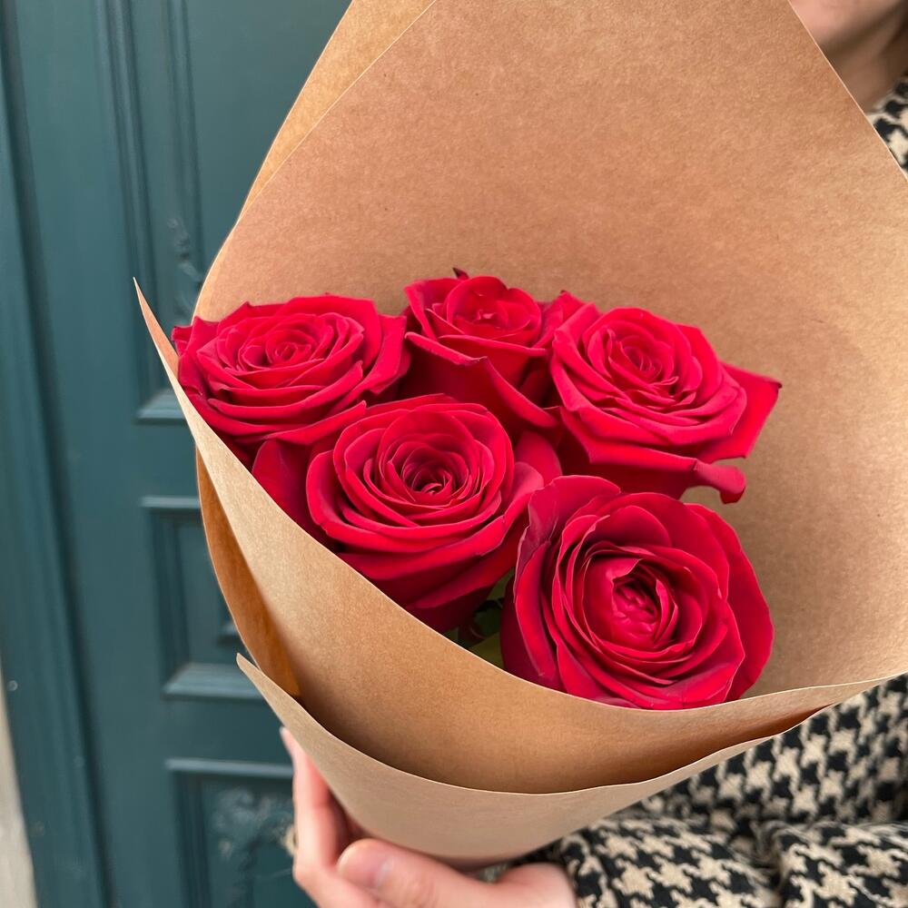 5 красных роз в крафте