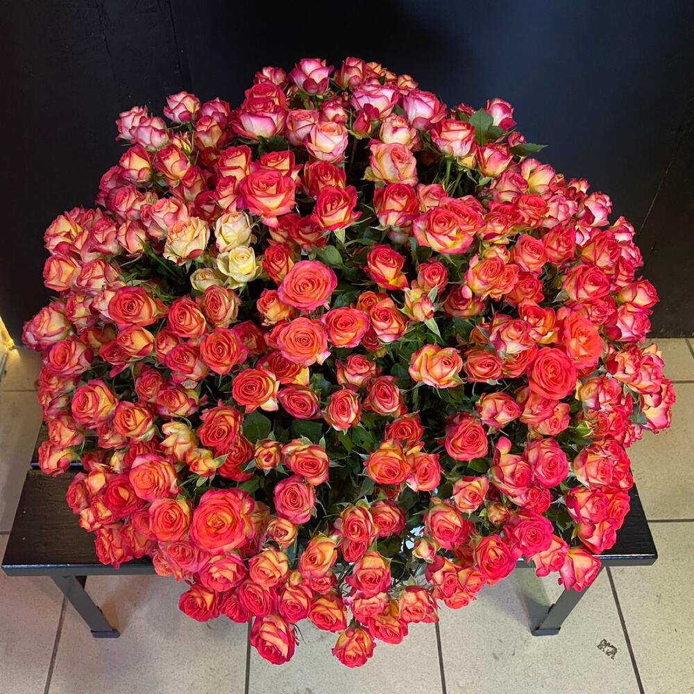 Корзина плетеная – 1 шт.Роза кустовая – 81 шт.