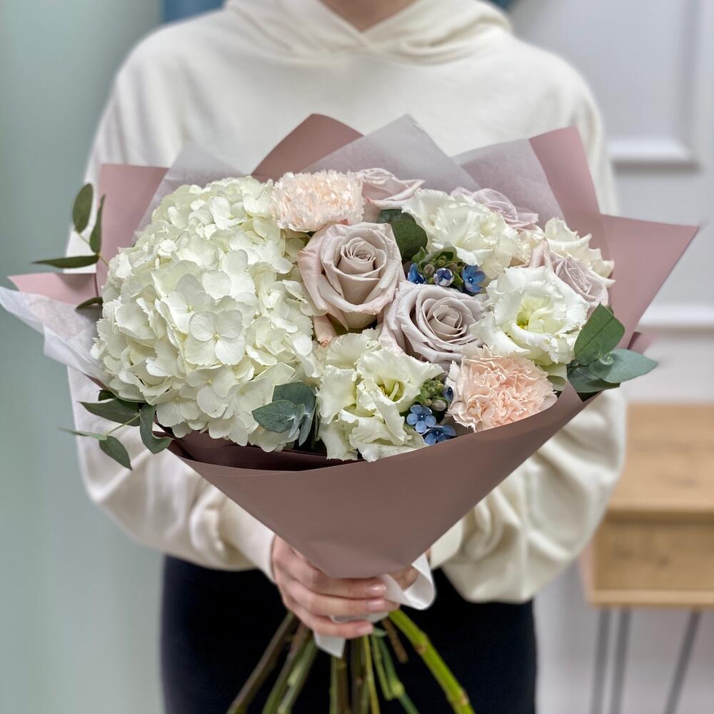 Авторский букет с ароматными розами и гортензией «Тайное влечение»