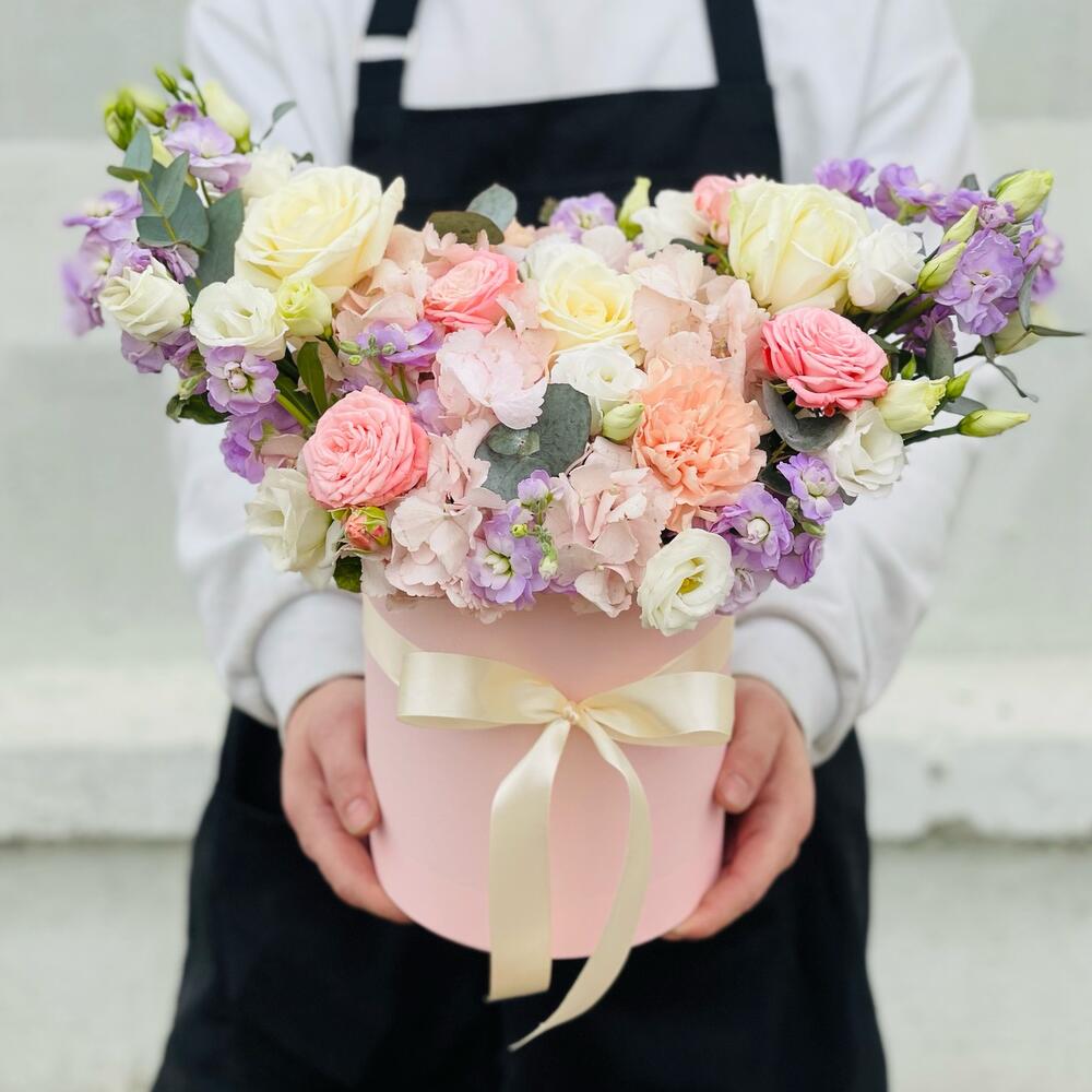 Авторский микс . Цветы в шляпной коробке