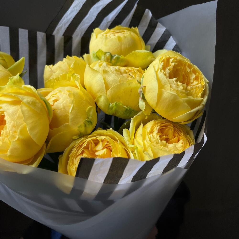 Роза кустовая пионовидная – 9 шт.Упаковка дизайнерская – 3 шт.