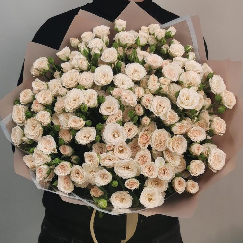Кустовая роза пионовидная – 21 шт. Упаковка дизайнерская – 2 шт. Открыточка с вашими пожеланиями – 1 шт.
