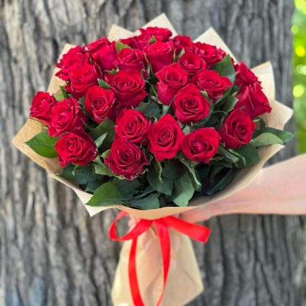 Классический букет из 15 Красных роз, стильно упакованный в бумагу Крафт.